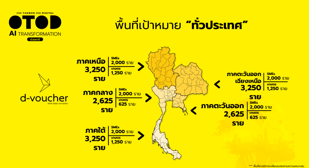 โดยให้สิทธิ์ SMEs 10,000 รายทั่วประเทศ โดยภาคกลาง SMEs 2,000 ราย ภาคตะวันออกเฉียงเหนือ SMEs 2,000 ราย ภาคตะวันออก SMEs 2,000 ราย ภาคเหนือ SMEs 2,000 ราย และภาคใต้ SMEs 2,000 ราย
