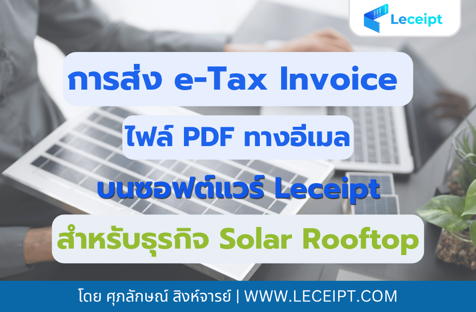 บทความนี้ได้สาธิตการจัดทำเอกสาร e-Tax Invoice บนซอฟต์แวร์ Leceipt สำหรับผู้ประกอบการด้าน Solar Rootop ที่ต้องการจัดทำเอกสาร e-Tax Invoice ให้กับลูกค้า โดยมีวิธีการดังต่อไปนี้